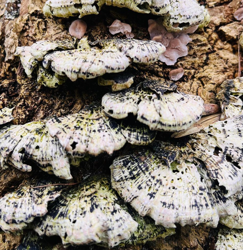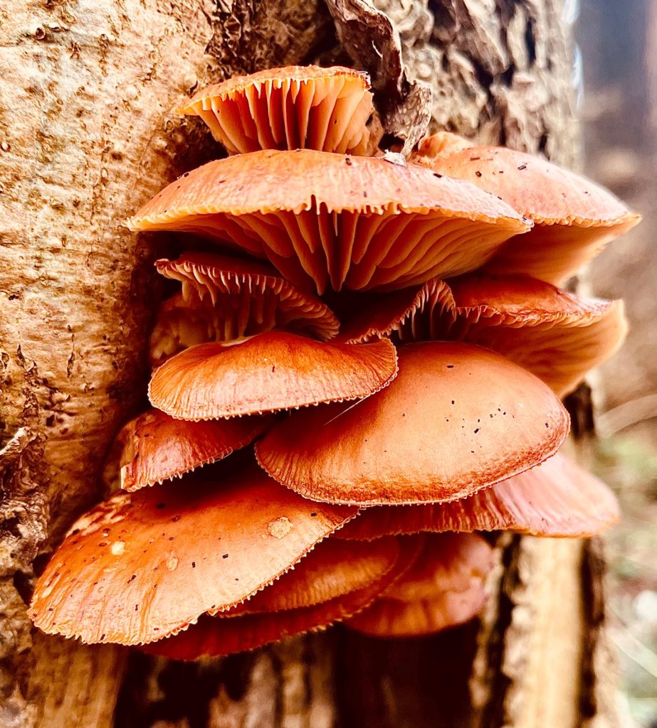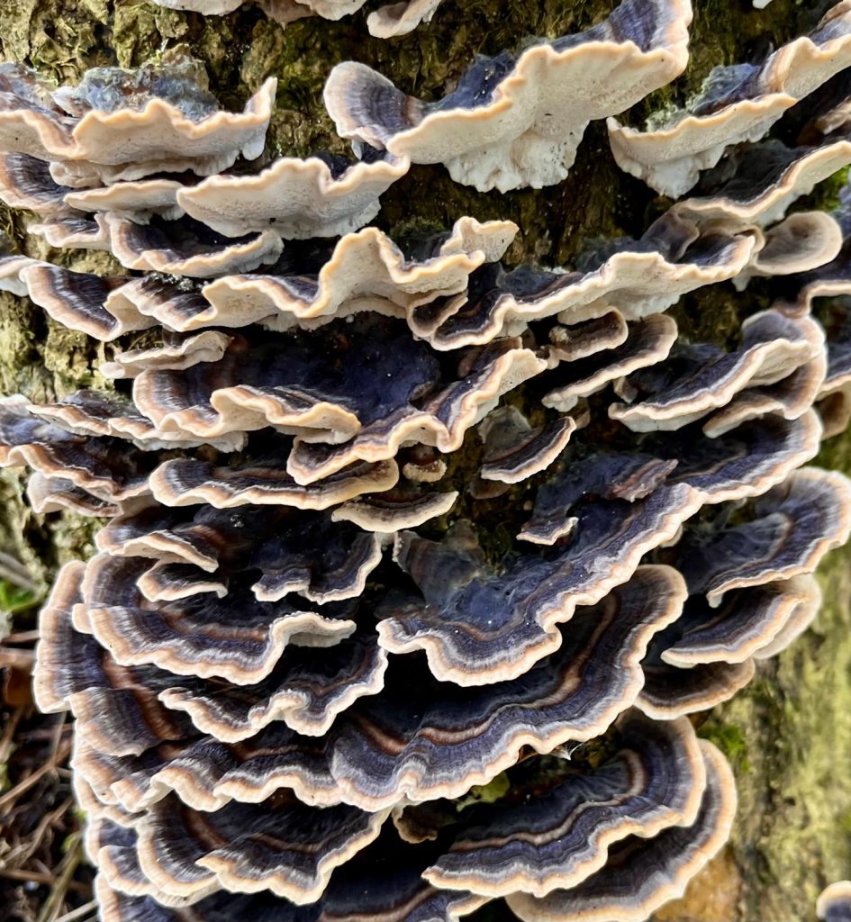 24-02-2026: Wat vinden we zoal in de eendenkooi? Restant van oude pijp, een roodborstje dat zich laat vangen, verschillende paddenstoelen en vooral heel veel sneeuwklokjes overal.